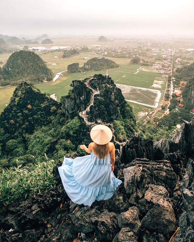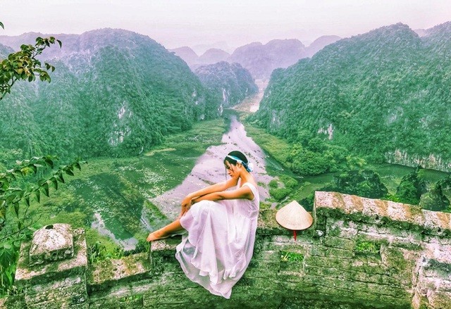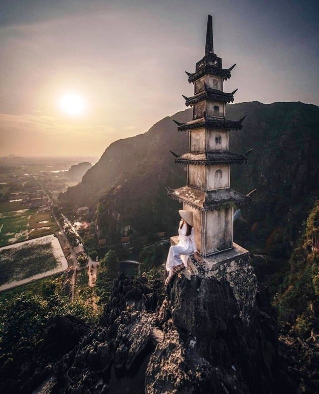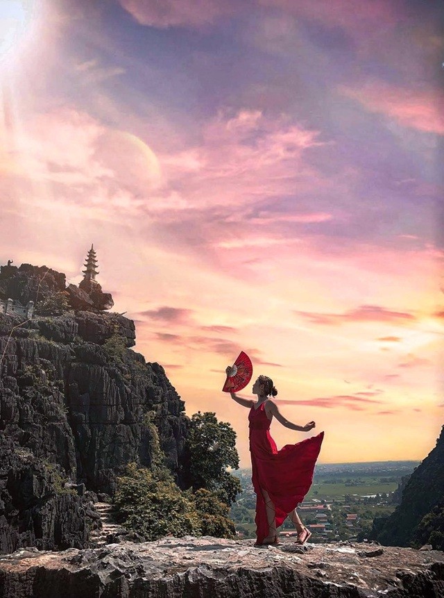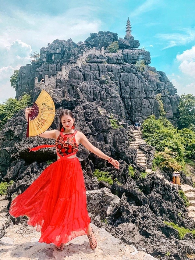 Sở dĩ Hang Múa được gọi với cái tên là điểm "check-in" trên "lưng chừng trời" bởi những điểm chụp ảnh ở đây đều cao đỉnh núi. Đây cũng là điểm du lịch đặc biệt có "1 - 0 - 2" ở Ninh Bình hiện nay. Trong ảnh cô gái với tà áo dài thướt tha chụp bức hình để đời trên đỉnh núi Múa.