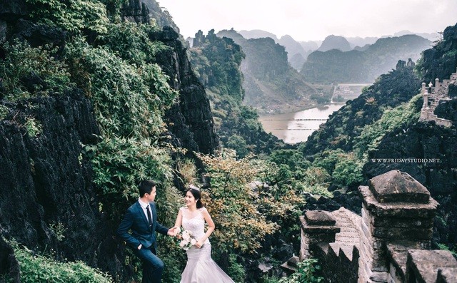 Hang Múa cũng là nơi nhiều đôi tân hôn chọn để lưu lại khung hình trong bộ ảnh cưới để lưu dấu lại kỷ niệm.