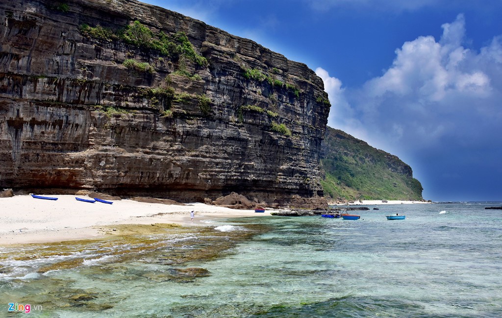 Đến đảo Lý Sơn, du khách có thể khám phá vách đá núi lửa Hang Cau có niên đại hàng triệu năm giống bức tường thành sừng sững giữa biển trời mênh mông.