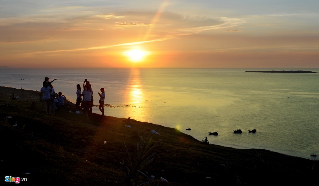 Chiều về, du khách lên đỉnh núi Thới Lới chiêm ngưỡng giây phút hoàng hôn huyền hoặc giữa đất trời xứ đảo.