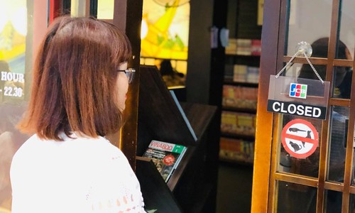12h trưa 11/2, một nhà hàng treo biển đóng cửa để không nhận thêm khách. Ảnh: Anh Tú