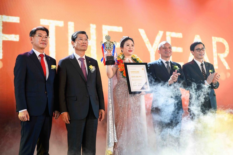 Ông Cha, Nam Gyu, Phó chủ tịch Tập đoàn Hanwha cùng ông Back Jong Kook, Chủ tịch kiêm Tổng giám đốc Hanwha Life Việt Nam (bìa trái) tại lễ vinh danh.
