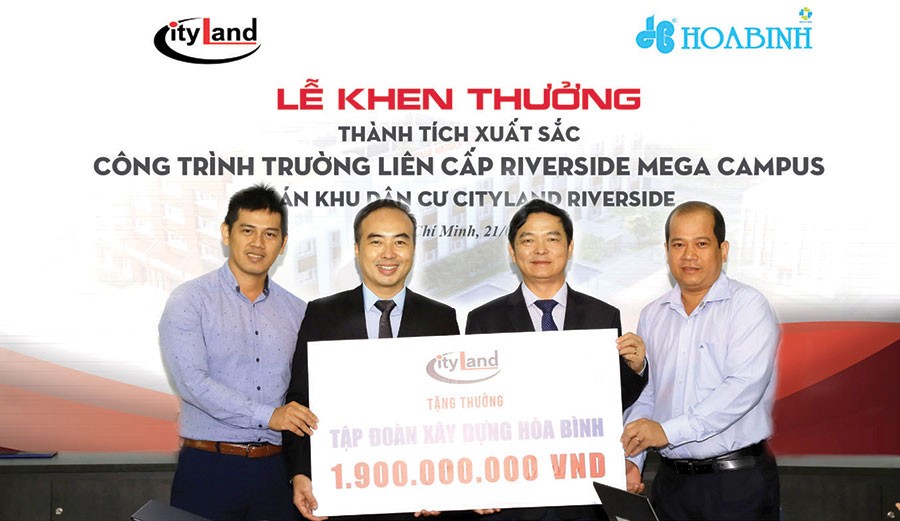 Mới đây, Hòa Bình đã nhận được thư khen của chủ đầu tư Cityland về thành tích xuất sắc dành cho công trình Trường liên cấp Riverside Mega Campus thuộc Dự án Khu dân cư Cityland Riverside (Quận 7, TP.HCM). Công trình được hoàn thành trong niềm vui an toàn tuyệt đối, đạt chất lượng, thẩm mỹ cao và bàn giao đúng tiến độ cam kết. Dấu ấn của Hòa Bình còn là sự chủ động tư vấn về công tác quản lý giúp dự án đạt hiệu quả cao nhất. Sự nỗ lực vượt bậc, tinh thần trách nhiệm cao và hết lòng hỗ trợ khách hàng của ban chỉ huy và đội ngũ kỹ sư, giám sát đã chinh phục và làm hài lòng chủ đầu tư. Ban lãnh đạo Cityland đã quyết định thưởng cho Hòa Bình số tiền 1,9 tỷ đồng. Đây là trường hợp đặc biệt trong ngành xây dựng, khi mà áp lực thi công đối với các nhà thầu rất lớn và hiếm khi chủ đầu tư hài lòng đến mức thưởng tiền cho nhà thầu.
