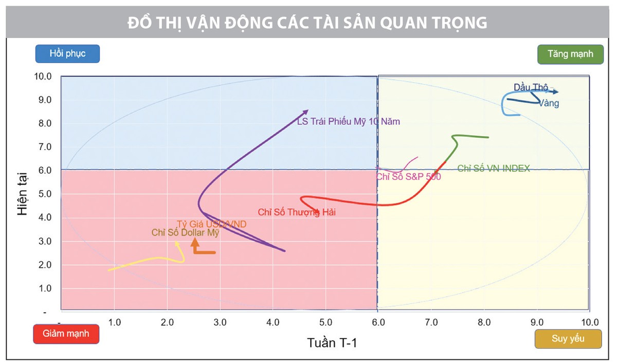 Về vận động các loại tài sản, lợi suất trái phiếu kho bạc kỳ hạn 10 năm của Mỹ tiếp tục ghi nhận tăng trong tuần qua, lên mức 4,56%. Chỉ số US Dollar Index (DXY) trở lại trên mốc 105, sau khi số liệu lạm phát nóng hơn dự báo làm giảm kỳ vọng về việc hạ lãi suất sớm của Mỹ. Tỷ giá USD/VND tạo mốc cao mới trong lịch sử, điều này có thể khiến Ngân hàng Nhà nước phải thực hiện biện pháp mạnh hơn để ổn định tỷ giá.