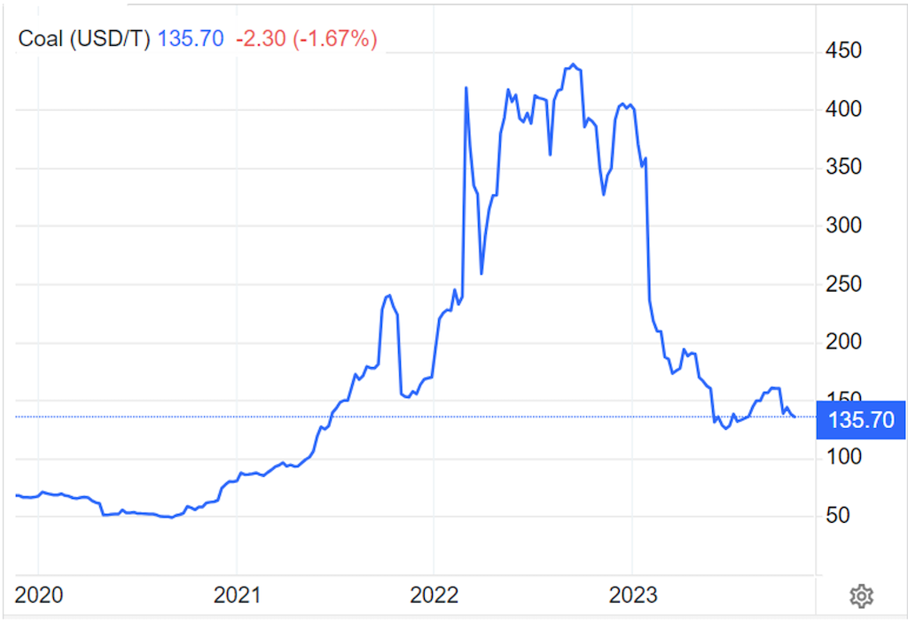 Các dự báo cũng cho hay, giá than nhập khẩu NewC Index dự kiến năm 2023 tăng 186% so với 2020 và 25% so với năm 2021.