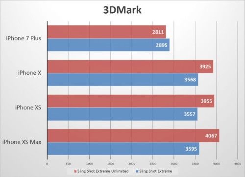 Trong phần thử riêng Ice Storm Unlimited với thiết lập đồ hoạ thấp hơn, khả năng xử lý của iPhone Xs và Xs Max mới nhanh hơn iPhone X, nhưng mức chênh lệch chỉ được 18% và kém xa so với 50% như Apple công bố.