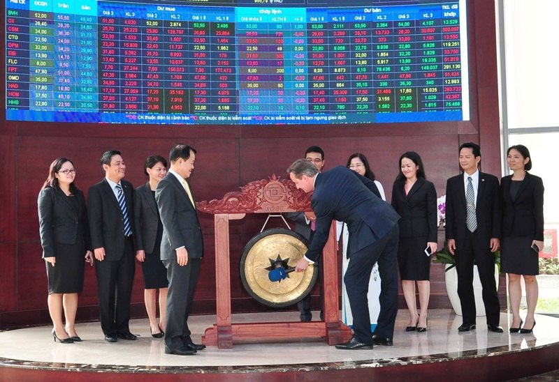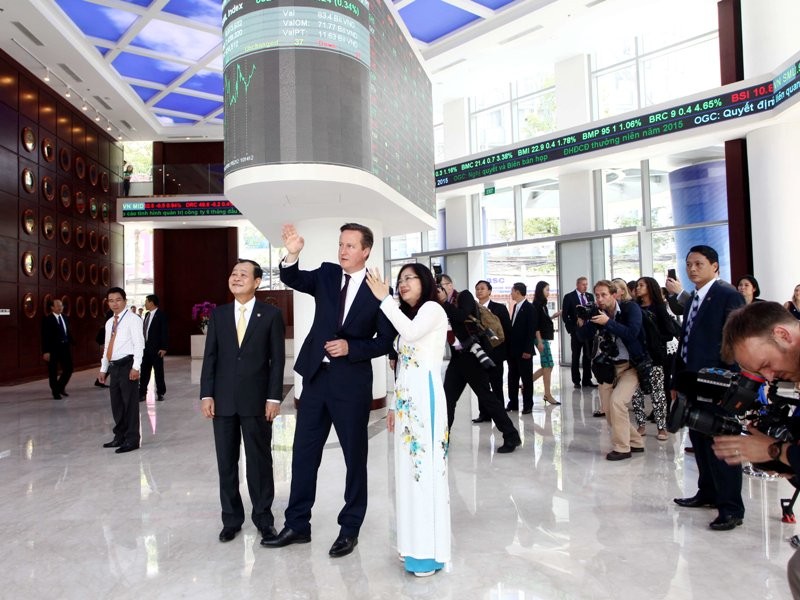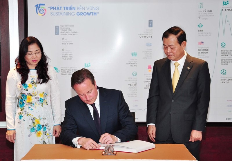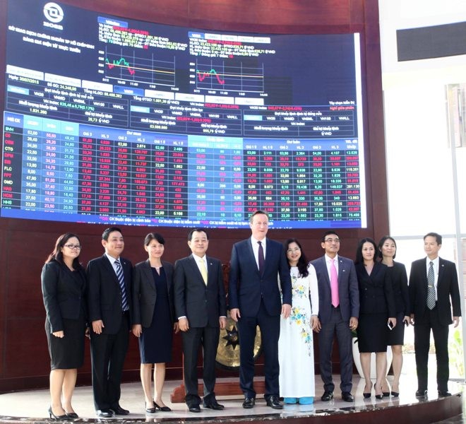 (ĐTCK) Ngày 30/7, trong khuôn khổ chuyến thăm Việt Nam, Thủ tướng Liên hiệp Vương quốc Anh và Bắc Ireland David Cameron đã đến thăm, làm việc tại Sở GDCK TP. HCM (HOSE) và gặp gỡ các doanh nghiệp Anh đang hoạt động tại Việt Nam. Phóng viên Báo ĐTCK ghi lại những hình ảnh chuyến thăm HOSE của Thủ tướng David Cameron. (Lê Toàn thực hiện).