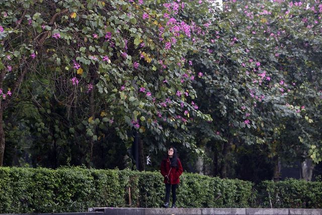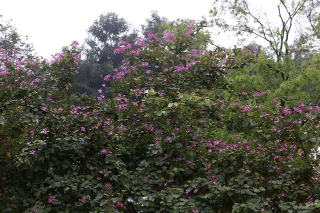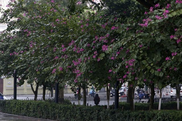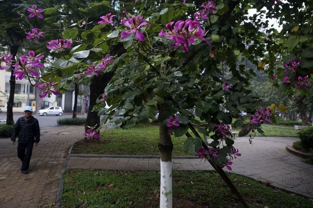 Hoa ban nở tím trên một góc quảng trường Lê Nin (Ba Đình).