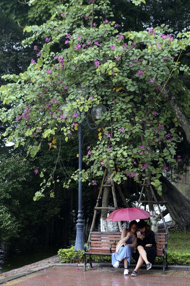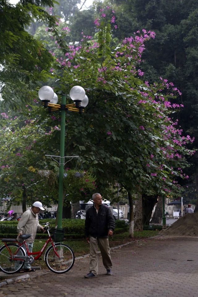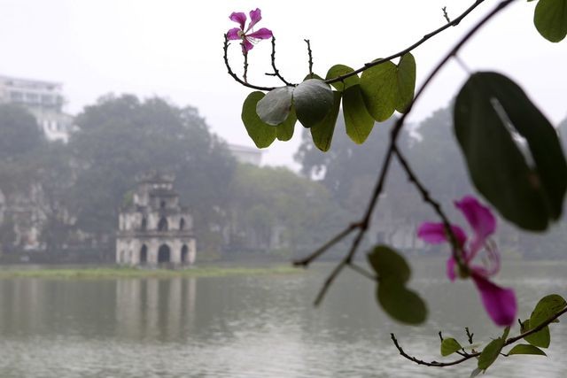 Bờ hồ Hoàn Kiếm cũng là nơi được trồng khá nhiều hoa ban, chủ yếu là hoa ban tím.