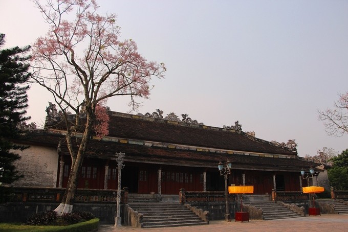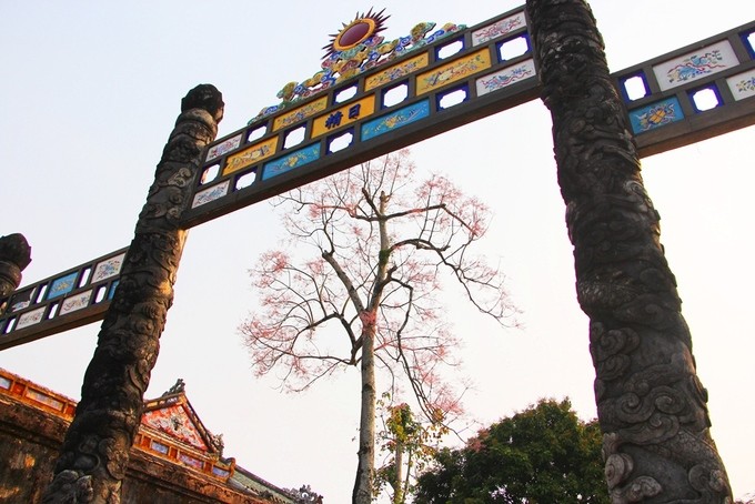 Hai cây ngô đồng được trồng hai bên góc phía sau điện Thái Hòa, nơi vua triều Nguyễn xưa kia ngự triều .