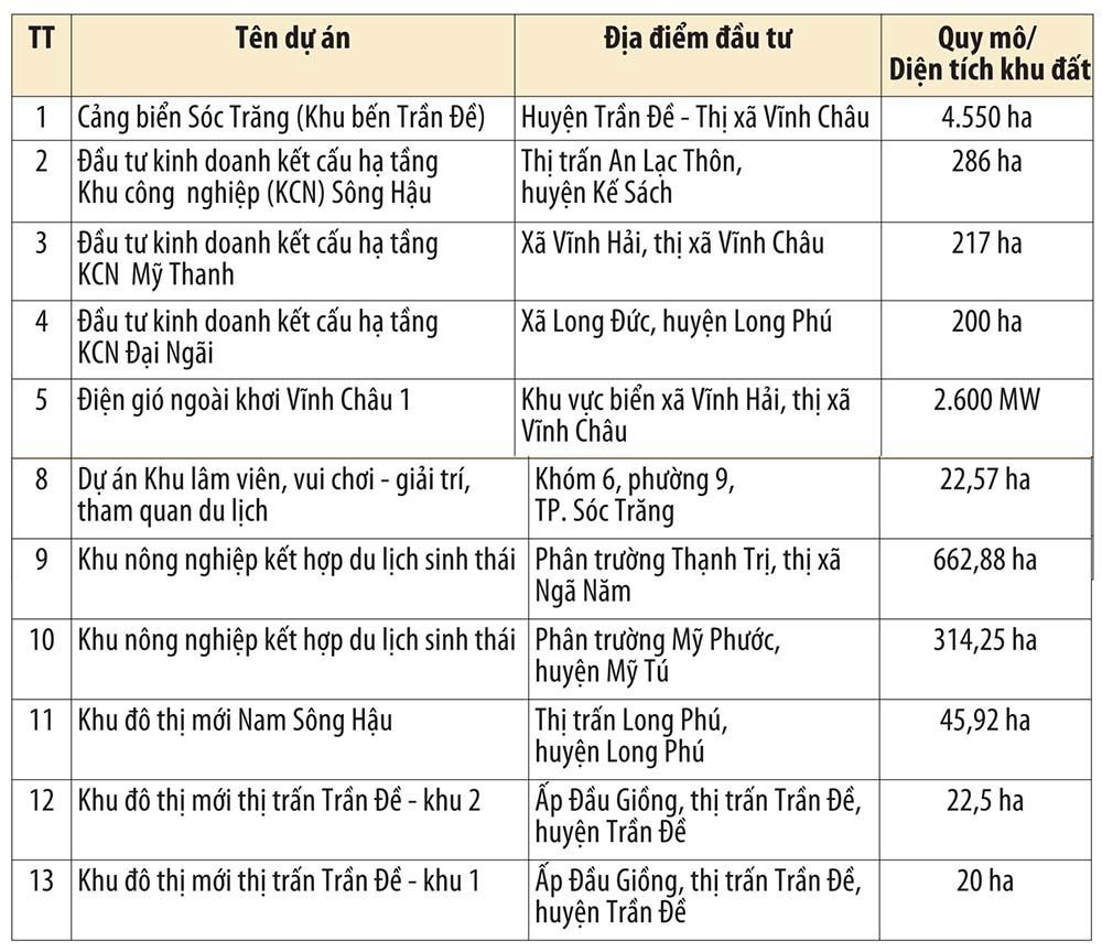 Một số dự án kêu gọi đầu tư trên địa bàn tỉnh Sóc Trăng