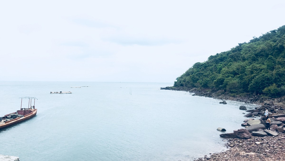 Bốn bề xung quanh đều là biển xanh ôm lấy những dãy núi trùng điệp như con rồng uốn lượn. Cát trắng mịn nhấp nhô sỏi đá. Không còn tiếng còi xe ồn ào phố thị, thay vào đó là tiếng chim ẩn mình trong những rặng phi lao hòa vào tiếng sóng xô bờ êm đềm. Sự mệt mỏi sau chuyến di chuyển ra đảo đã tan biến từ bao giờ.