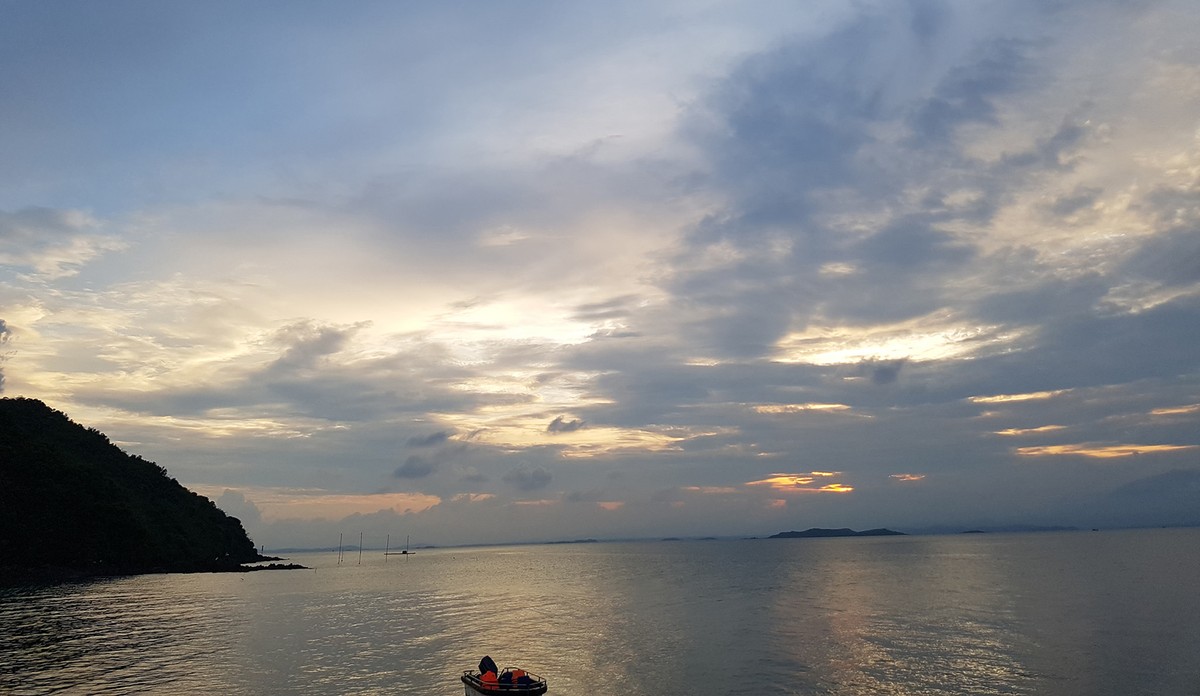 6 giờ sáng hôm sau, chiếc phà đưa du khách quay lại cảng Ghềnh Đá đã chờ sẵn từ bao giờ. Phía sau lưng chúng tôi, Cái Chiên đẹp hoang sơ và thuần khiết trong ánh bình minh. Giống như hình ảnh cô gái thôn quê mới lớn: mộc mạc, dung dị và hiền lành. Màu xanh của biển hòa với màu xanh núi rừng tĩnh lẵng và nên thơ.