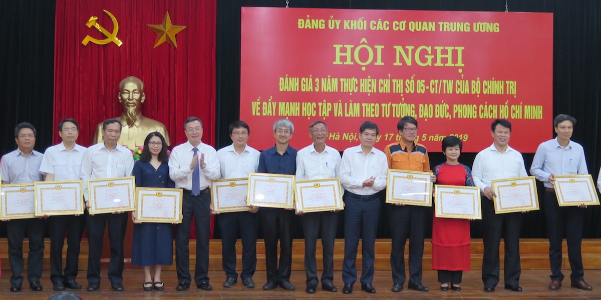 Trong không khí chào mừng Kỷ niệm 129 năm Ngày sinh Chủ tịch Hồ Chí Minh (19/5/1890-19/5/2019); Hướng đến Kỷ niệm 50 năm thực hiện Di chúc của Người, Ban Thường vụ Đảng uỷ Khối các cơ quan Trung ương tổ chức Hội nghị đánh giá 3 năm thực hiện Chỉ thị số 05-CT/TW ngày 15/5/2016 của Bộ Chính trị về đẩy mạnh học tập và làm theo tư tưởng, đạo đức, phong cách Hồ Chí Minh; biểu dương, khen thưởng các tổ chức đảng tiêu biểu, cá nhân điển hình trong học tập và làm theo tư tưởng, đạo đức, phong cách Hồ Chí Minh.