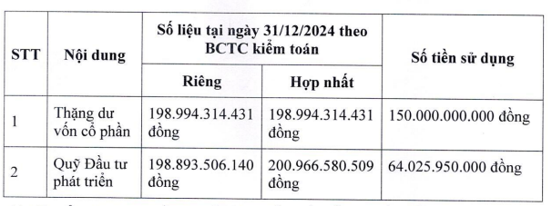 Theo đó, Hodeco dự kiến phát hành hơn 21,4 triệu cổ phiếu thưởng cho cổ đông hiện hữu theo tỷ lệ 12%. Nguồn vốn thực hiện gồm thặng dư vốn cổ phần và quỹ đầu tư phát triển tại báo cáo tài chính đã được kiểm toán cho năm tài chính kết thúc ngày 31/12/2024.