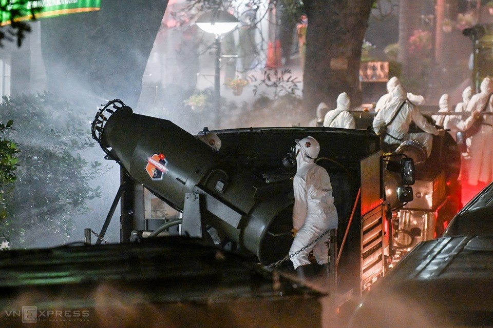 Hơn 20h, công việc hoàn tất. Các chiến sĩ và toàn bộ các trang thiết bị được tiếp tục khử trùng để đảm bảo an toàn trước khi về đơn vị.