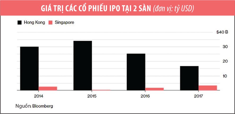 Trong vài năm qua, Hồng Kông luôn ở vị thế trên so với Singapore trong việc thu hút các thương vụ IPO (bán cổ phiếu lần đầu ra công chúng), trong khi Singapore duy trì được sức cạnh tranh ở nhiều khía cạnh khác.