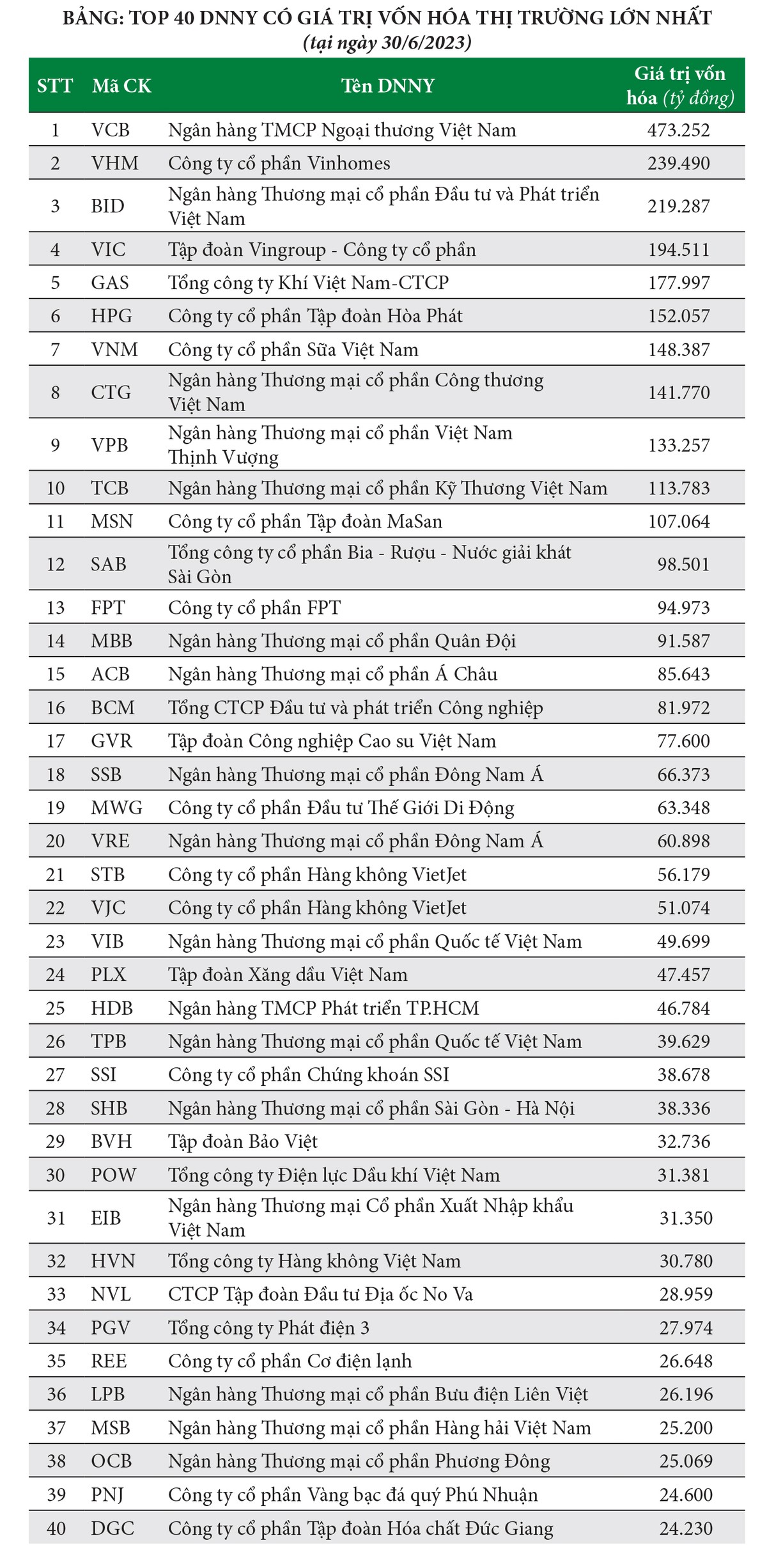 Tính đến ngày 30/6/2023, HOSE có 395 doanh nghiệp đang niêm yết với 40 doanh nghiệp có quy mô vốn hóa đạt trên 1 tỷ USD, trong đó có Ngân hàng Thương mại cổ phần Ngoại thương Việt Nam và Công ty cổ phần Vinhomes là 2 doanh nghiệp có vốn hóa trên 10 tỷ USD. Thông qua TTCK, các doanh nghiệp niêm yết đã có cơ hội tiếp cận hiệu quả nguồn vốn để mở rộng hoạt sản xuất kinh doanh, nâng cao hình ảnh, thương hiệu của doanh nghiệp trên thị trường. Tính từ năm 2000 đến nửa đầu năm 2023, các doanh nghiệp niêm yết trên HOSE đã thực hiện 1.034 đợt phát hành có thu tiền với tổng khối lượng phát hành thêm là 26,87 tỷ cổ phiếu, tương ứng giá trị thu được đạt hơn 413.747 tỷ đồng.