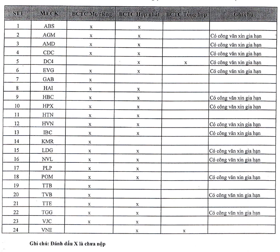 Trong danh sách 24 doanh nghiệp niêm yết do HOSE công bố, chỉ có 14/24 doanh nghiệp đã gửi công văn xin gia hạn.