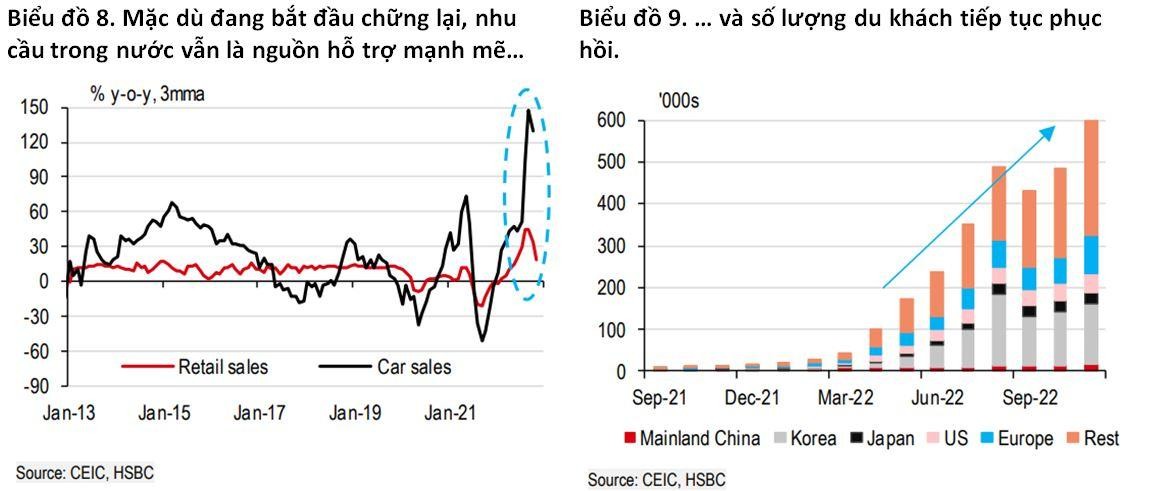Bất chấp những khó khăn bên ngoài, HSBC cho biết, nhu cầu nội địa bùng nổ đã và đang hỗ trợ tăng trưởng. Doanh thu bán lẻ tiếp tục cho thấy kết quả tích cực của việc mở cửa trở lại, tháng 11 tăng 17% so với cùng kỳ năm trước (Biểu đồ 8).