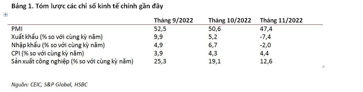 HSBC đã đưa ra dữ liệu tháng 11 rất đáng lưu tâm, đó là xuất khẩu giảm 7,4% so với cùng kỳ năm trước, giảm nhiều hơn so với dự báo của HSBC và thị trường (HSBC: -2,3%; BBG: -2,3%).