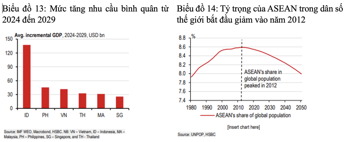 ASEAN, nền kinh tế lớn thứ 11 thế giới vào năm 2005, đã vươn lên vị trí thứ 5 vào năm 2023. Theo báo cáo Triển vọng Kinh tế Thế giới của IMF, khu vực này được kỳ vọng sẽ tăng trưởng ở mức bình quân 4,7% trong giai đoạn 2024-2029, khiến ASEAN trở thành khối kinh tế tăng trưởng nhanh nhất thế giới. Ở châu Á, tăng trưởng của ASEAN chỉ đi sau Ấn Độ, Bangladesh, Indonesia và Philippines, nhờ đặc điểm nhân khẩu học thuận lợi, là những động lực chính thúc đẩy mức tăng trưởng này, với mức tăng nhu cầu lớn nhất ở hai nền kinh tế này.