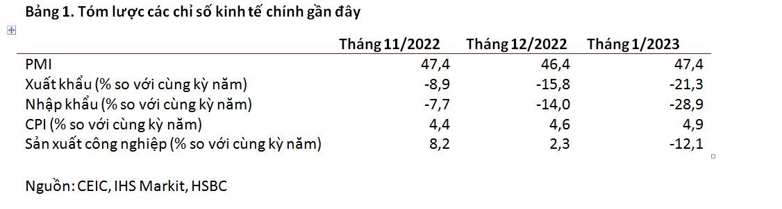 Trong lĩnh vực bên ngoài, dữ liệu thương mại tháng 1 yếu đi đáng kể do các nhà máy đóng cửa nghỉ lễ 7 ngày. Do đó, sản xuất công nghiệp đã khép lại tháng Giêng với kết quả yếu, giảm cả trên cơ sở so sánh từng tháng và năm. Ngoài ra, chỉ số PMI mới nhất là 47,4 càng chứng thực sự suy yếu kéo dài trong lĩnh vực sản xuất, mặc dù các đơn đặt hàng xuất khẩu mới tăng lên khi tâm lý toàn cầu được cải thiện đôi chút.