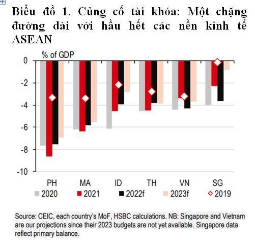 Cụ thể, Singapore, Indonesia và Việt Nam nhiều khả năng sẽ đứng đầu khu vực với kế hoạch/dự định đưa tỷ trọng thâm hụt trên GDP về gần mức của thời điểm trước đại dịch, còn Malaysia, Philippines và Thái Lan sẽ triển khai với tiến độ chậm hơn.