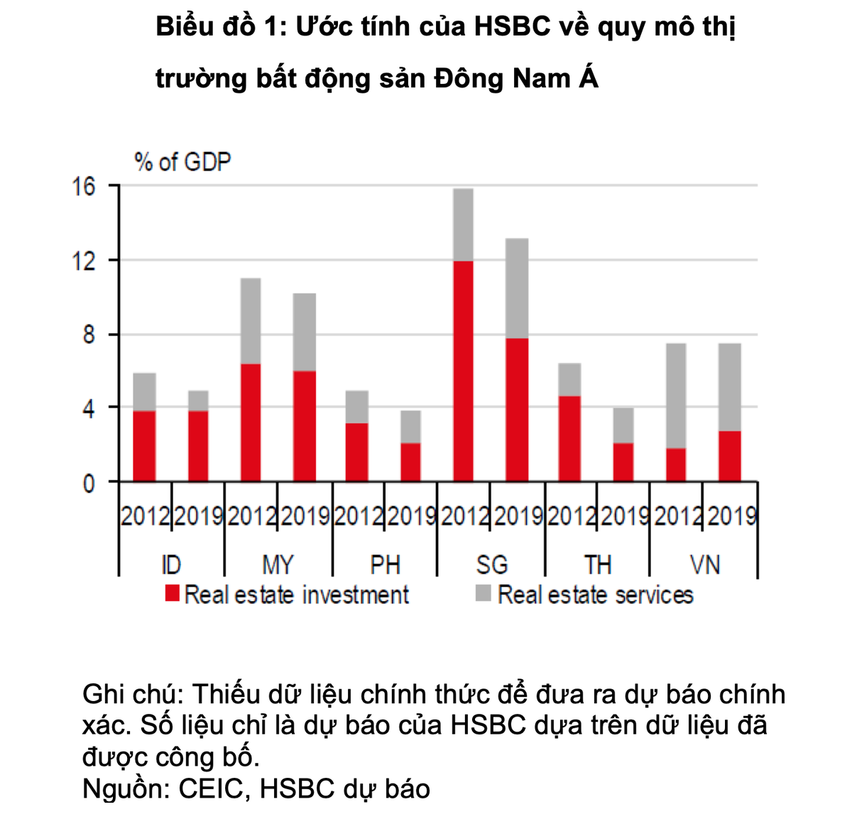 "Chúng tôi chủ yếu dựa vào những thông tin đã được công bố (ví dụ như báo cáo đăng trên báo chí và các đơn vị cung cấp dịch vụ bất động sản) để hiểu rõ hơn về ngành và đưa ra những nhận định quan trọng", theo HSBC.