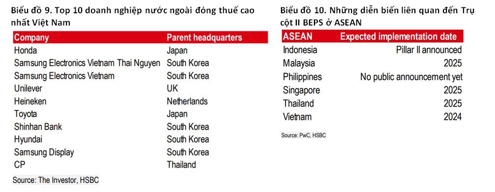 HSBC cho rằng, để đi đến một quyết định đầu tư thì thuế là yếu tố tối quan trọng, nhưng đây không phải là yếu tố duy nhất quyết định số phận các dòng vốn FDI. Vì vậy, điều quan trọng là cần cải thiện các chỉ số khác, chẳng hạn như mức độ kết nối hạ tầng, mức độ dồi dào của lực lượng lao động có tay nghề, sự thuận lợi trong kinh doanh, các hiệp định thương mại tự do… Thêm nữa, Việt Nam không phải quốc gia duy nhất chuẩn bị áp dụng mức thuế tối thiểu này, các nước ASEAN khác cũng đang nghiên cứu triển khai tương tự.