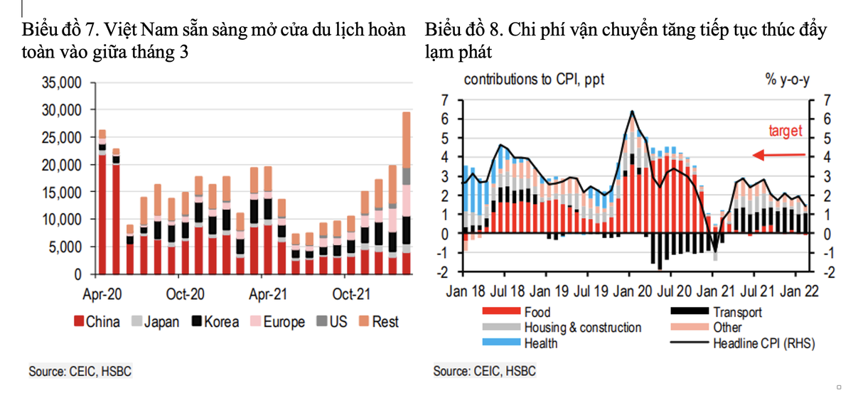 "Tất nhiên, các nhà hoạch định chính sách Việt Nam vẫn cần đặc biệt lưu tâm đến những rủi ro về lạm phát vì giá hàng hóa tăng là vấn đề xảy ra trên diện rộng chứ không chỉ xoay quanh nhiên liệu", HSBC nêu quan điểm.