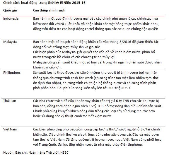 "Theo quan điểm của chúng tôi, El Niño có tác động kinh tế khác nhau giữa các khu vực thông qua việc thay đổi sản xuất nông nghiệp và cung cầu năng lượng”, Báo cáo của HSBC nhận định.