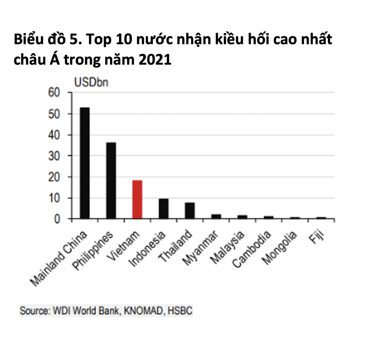 Bất chấp đại dịch, trong năm 2021, Việt Nam vẫn là nước nhận kiều hối cao thứ ba ở châu Á với tổng giá trị chuyển về đạt 18 tỷ USD, chỉ đứng sau Trung Quốc và Philippines. Trong những giai đoạn như hiện nay, kiều hối ổn định là nguồn hỗ trợ có giá trị cho tài khoản vãng lai của Việt Nam.