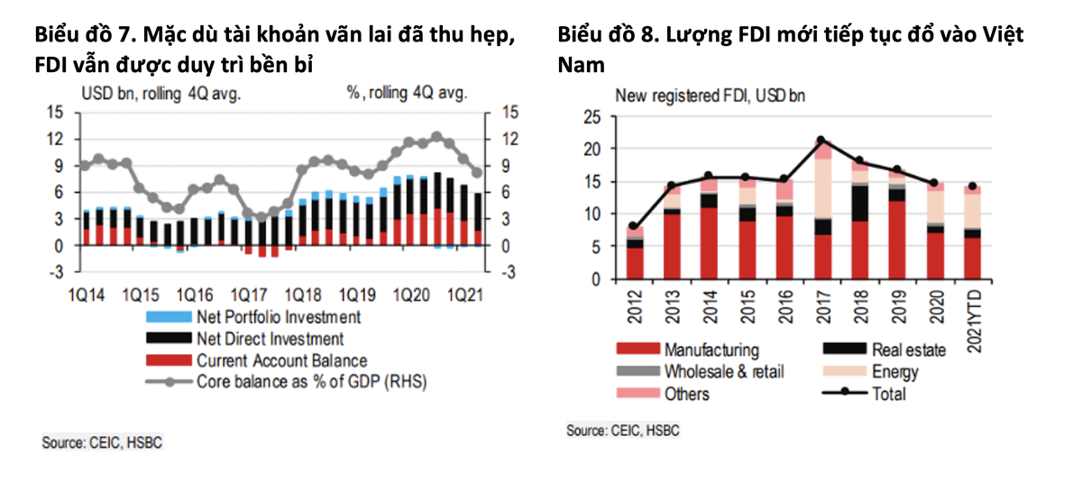 "Dẫu vậy, chúng tôi vẫn tin rằng các quyết định đầu tư FDI phụ thuộc vào tiềm năng trong trung và dài hạn của nền kinh tế", theo HSBC.