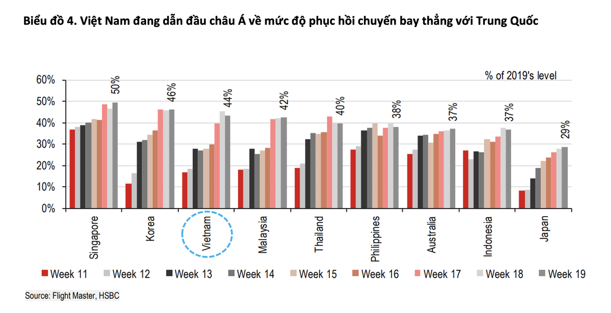 Bất chấp số lượng có giảm nhẹ so với mức của tháng 4, Việt Nam một lần nữa lại đón hơn 900.000 du khách, đưa mức phục hồi du lịch lên khoảng 70% so với mức của năm 2019. Cụ thể, du khách đến từ Trung Quốc đại lục phục hồi 35% so với mức của năm 2019 mặc dù vẫn còn chậm, con số này vẫn còn đang tăng lên. Việt Nam đã đạt được nhiều tiến bộ trong việc phục hồi các chuyến bay thẳng với Trung Quốc, hiện tại đã phục hồi 44% so với mức của năm 2019.