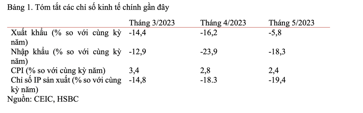 Mặc dù dữ liệu hoạt động kinh tế tháng 5 không xấu đi, HSBC cho rằng, Việt Nam vẫn chưa có dấu hiệu "chạm đáy" để bật trở lại trong bối cảnh nhiều khó khăn gia tăng cản trở tăng trưởng. Trong đó, dữ liệu lĩnh vực bên ngoài chậm lại vẫn là rủi ro lớn nhất đối với tăng trưởng.