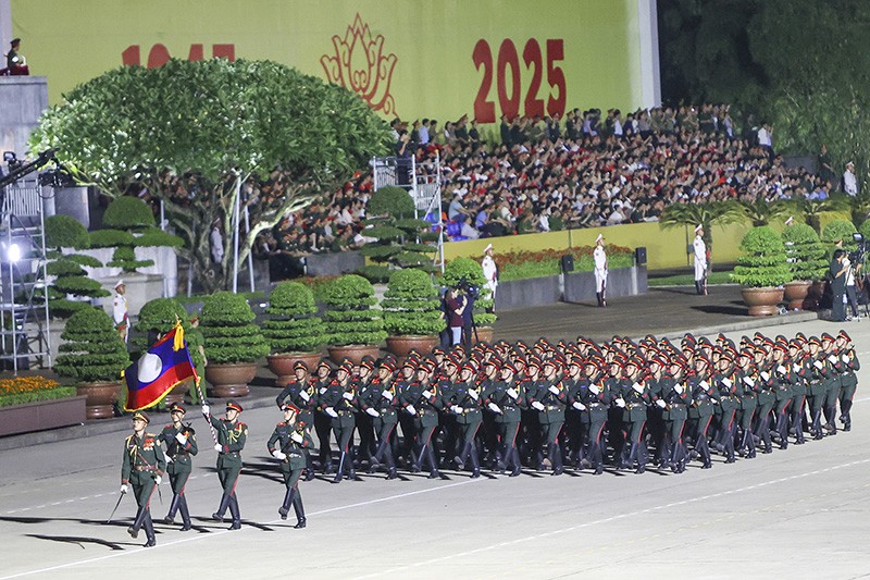 Khối quân đội các nước Liên bang Nga, Lào, Campuchia lần đầu tiên tham gia tổng hợp luyện tại quảng trường Ba Đình.