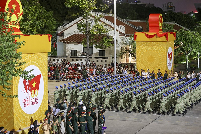Sau hơn 3 tháng huấn luyện và 4 lần tổng hợp luyện tại Trung tâm Huấn luyện Quân sự quốc gia 4, tối 21/8, lần đầu tiên diễn ra tổng hợp luyện diễu binh, diễu hành phục vụ cho kỷ niệm 80 năm Cách mạng tháng Tám và Quốc khánh 2/9.