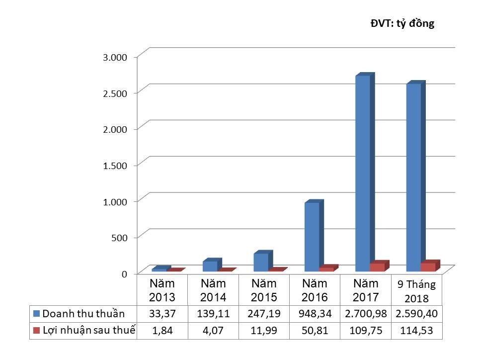 Trong 9 tháng năm 2018, doanh thu Công ty đạt 2.590 tỷ đồng, gần bằng cả năm 2017. Lợi nhuận sau thuế ghi nhận 114,5 tỷ đồng, vượt cả lợi nhuận năm 2017.