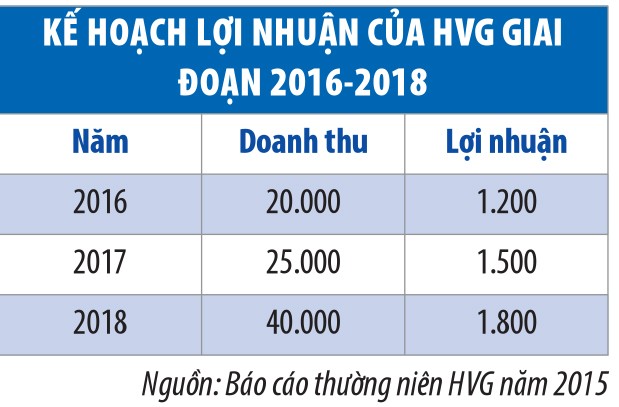 Sản lượng thức ăn chăn nuôi dự kiến 1,5 triệu tấn trong năm 2016 và đến 2018 sẽ đạt 2,5 triệu tấn với tổng đàn heo bố mẹ là 100.000 con. HVG đặt kế hoạch lợi nhuận rất tham vọng với 1.200 tỷ đồng năm 2016; 1.800 tỷ đồng năm 2018. Tuy nhiên, thị trường đang thiếu dữ liệu để đặt niềm tin vào kế hoạch này.