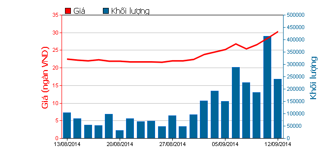 Tính trong 10 phiên giao dịch gần đây nhất, mã này cũng đã tăng mạnh từ 22.000 đồng lên 30.300 đồng/cổ phiếu, tương ứng tăng 37,73%. Bình quân mỗi phiên giao dịch xấp xỉ 2 triệu đơn vị, giá trị gần 52,38 tỷ đồng.