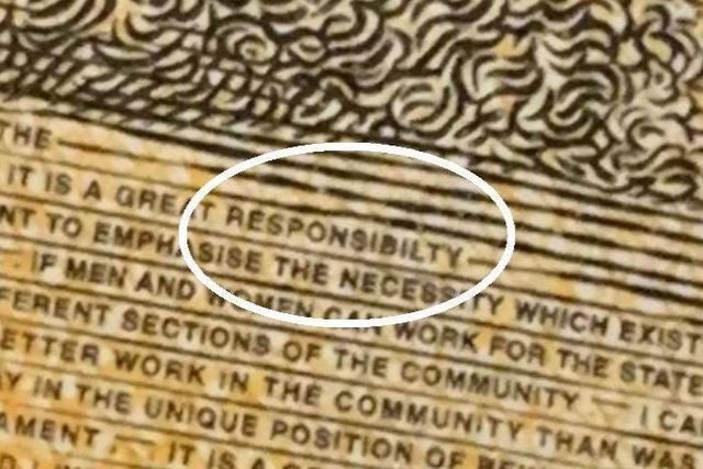 Theo đó, Đài phát thanh Triple M đã đăng trên Instagram vào hôm qua (9/5) một bức ảnh phóng to của tờ tiền này cho thấy lỗi chính tả của từ “responsibility” (có nghĩa là trách nhiệm). Từ này xuất hiện ba lần trên tờ tiền 50 AUD mới này và lần nào chữ cái “I” thứ 3 cũng bị mất và biến từ đó bị sai chính tả thành “responsibilty”.