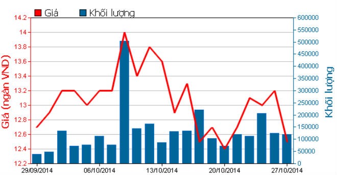 Biểu đồ giá, KLGD của cổ phiếu IDI trong 1 tháng qua. Nguồn: HOSE