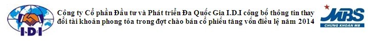 IDI công bố thông tin thay đổi tài khoản phong tỏa trong đợt chào bán cổ phiếu tăng vốn năm 2014