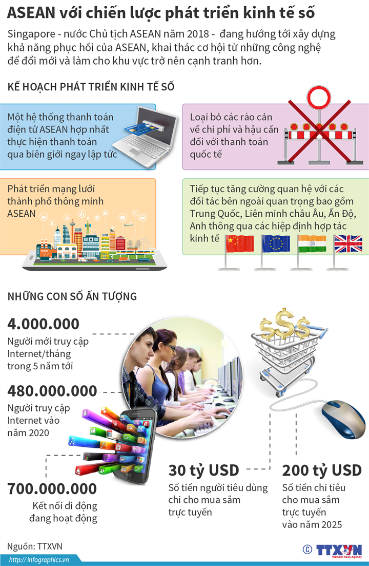 Ảnh minh họa Theo TTXVN Tin liên quan [Infographic] WEF 2018 hướng tới hợp tác quốc tế vì lợi ích chung 24/01/2018 14:52 [Infographic] Chiến lược thương mại của Mỹ đến năm 2022 10/03/2018 10:33 [Infographic] Những ưu tiên hành động của Liên hợp quốc trong năm 2018 19/01/2018 10:41 Bùng nổ cửa hàng không nhân viên ở Trung Quốc, Nhật Bản 01/01/2018 11:15 Từ khóa Infographic Infographic kinh tế kinh tế số ASEAN Infographic asean