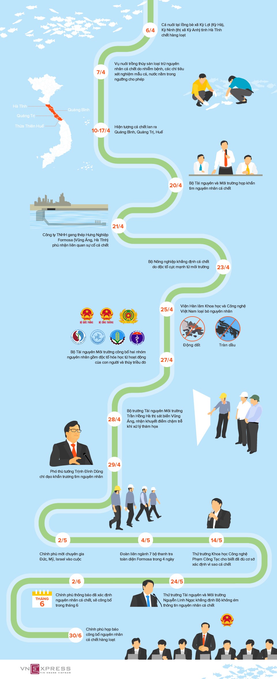 [Infographic] Ba tháng điều tra nguyên nhân cá chết hàng loạt