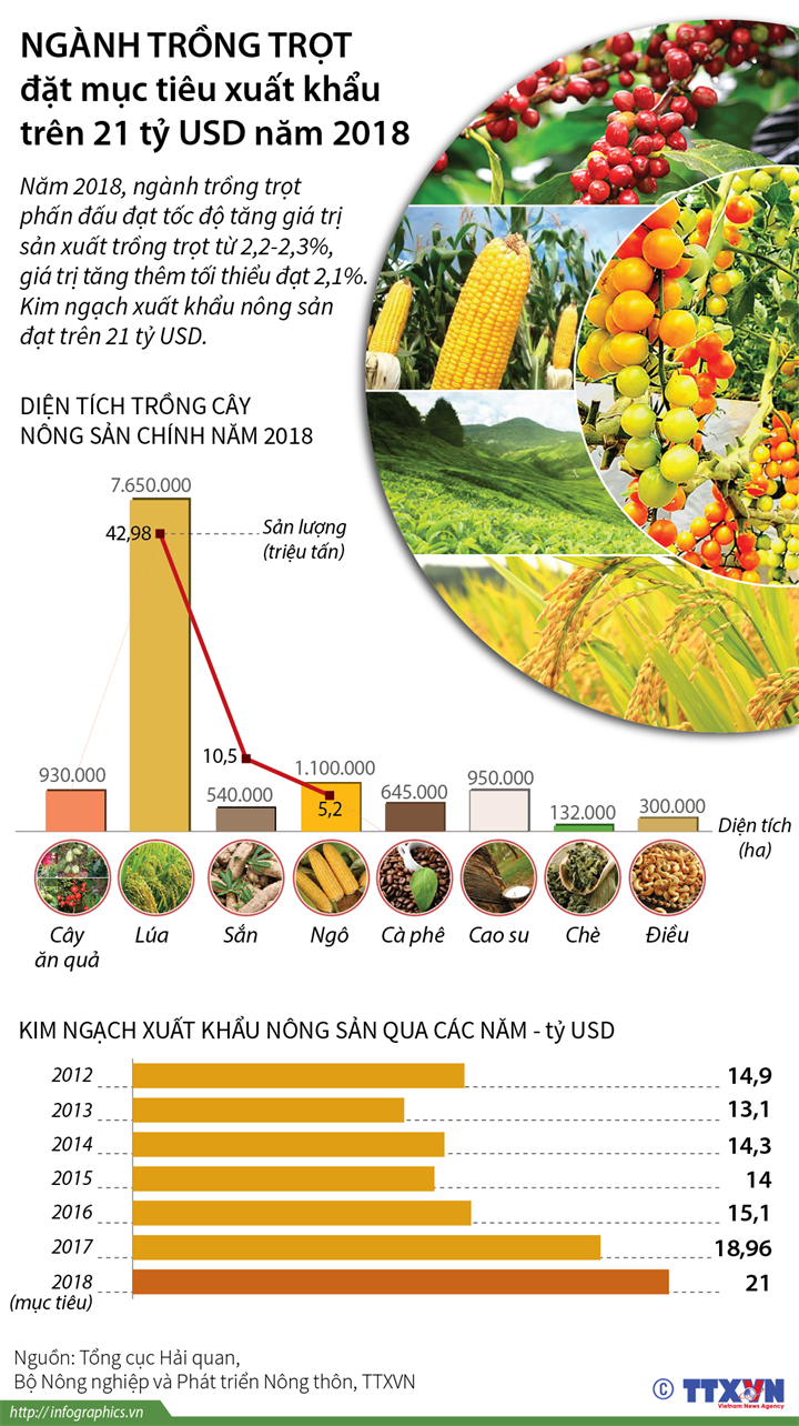 [Infographic] Ngành trồng trọt đặt mục tiêu xuất khẩu trên 21 tỷ USD năm 2018