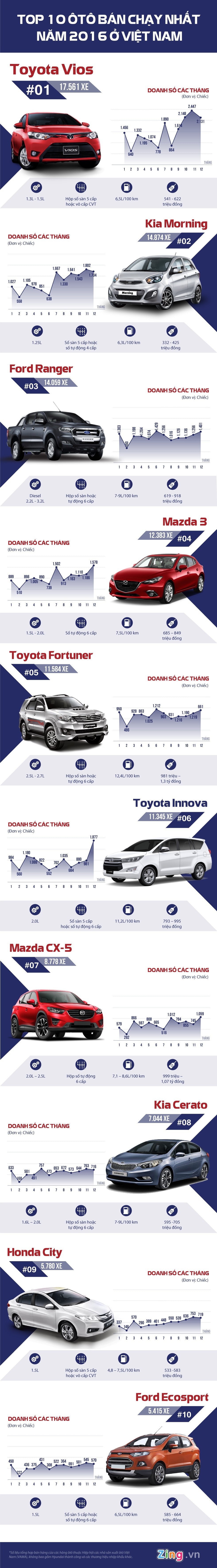 Theo Zing Tin liên quan 10 mẫu ô tô bán chạy nhất 6 tháng đầu năm 2016 11/07/2016 14:33 Những hãng xe "ăn nên làm ra" nhất Việt Nam 2016 24/12/2016 10:56 Người Việt mua hơn 300.000 ôtô năm 2016 11/01/2017 22:06 [Infographic] Top ôtô ăn khách tháng 11 tại Việt Nam 13/12/2016 09:37 Từ khóa ô tô Toyota Sedan Toyota Vios bán chạy mô đen Trường Hải Auto Top 10 xe bán chạy nhất năm 2016