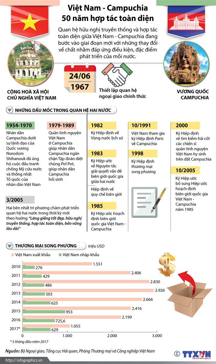 [Infographic] Việt Nam - Campuchia: 50 năm hợp tác toàn diện