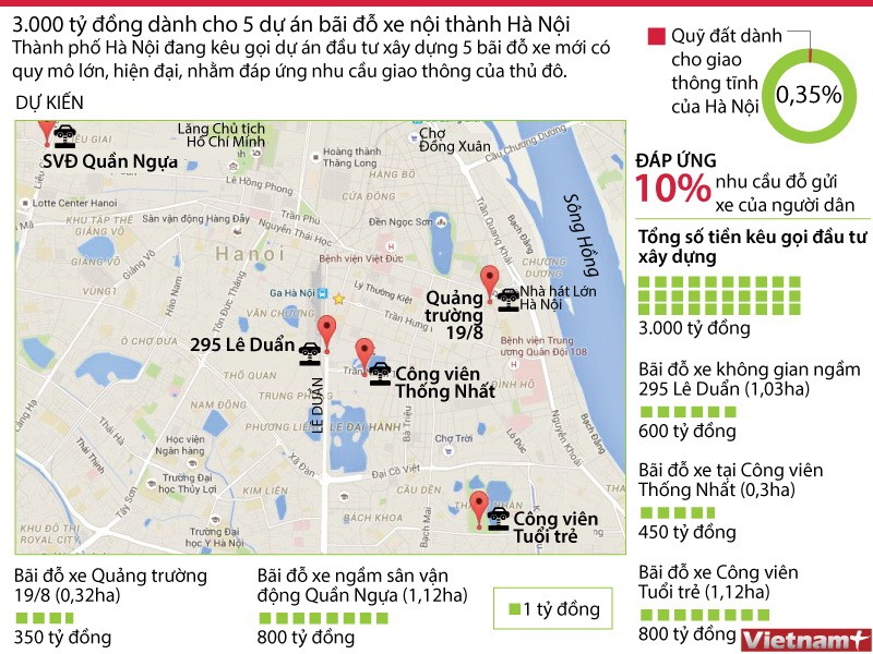 Theo Vietnam+ Tin liên quan Hà Nội "quyết" xây bãi đỗ xe ngầm hơn 10.000 m2 trong công viên Thống Nhất 27/03/2016 10:04 Hà Nội vẫn “loay hoay” tìm giải bài toán về bãi đỗ xe ngầm 23/04/2016 15:39